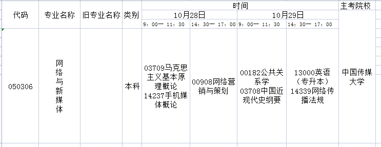 2023年10月山东自考网络与新媒体本科开考科目及考试时间