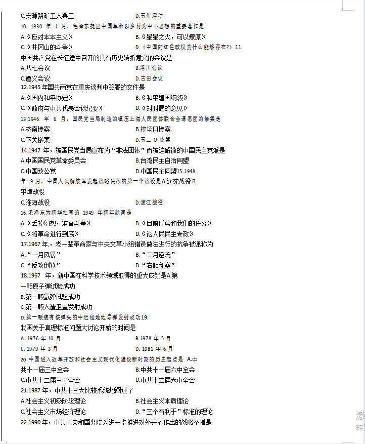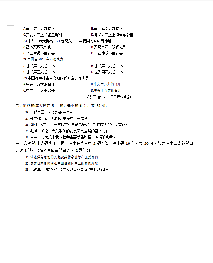 相关《2021年10月山东自学考试本科中国近现代史纲要历年真题》的文章
