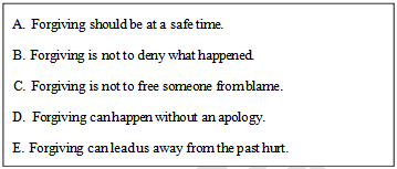 ①Forgiving someone does not mean releasing them from an earlier guilt. What if the person who wronged you is not living? What if the person is someone who made you extremely embarrassed during school 20 or 30 years ago? Letting go of emotional pain does not mean that nothing happened; it means that you no longer want to be controlled by it.